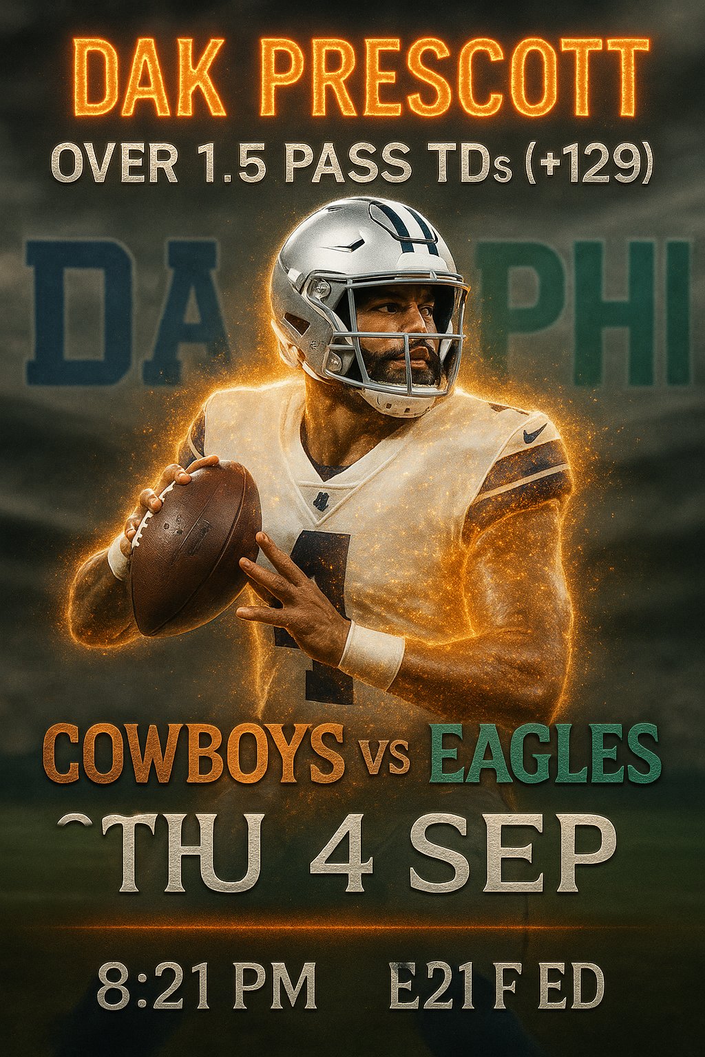 - 1.Dak Prescott Over 1.5 Pass TDsStrong historical performance and a key defensive absence create value.