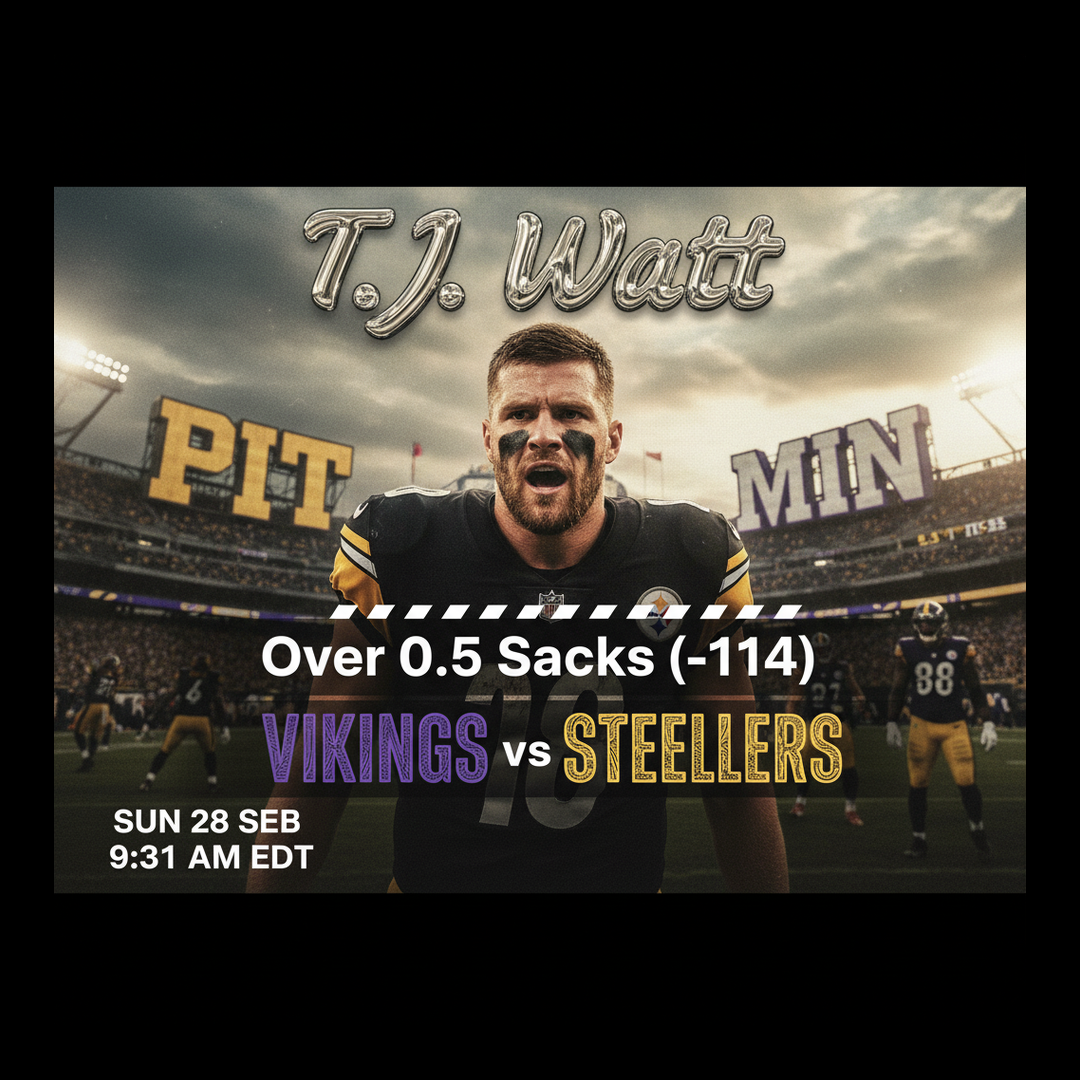 - 1.T.J. Watt Over 0.5 SacksElite pass rusher facing a vulnerable offensive line and sack-prone quarterback.
