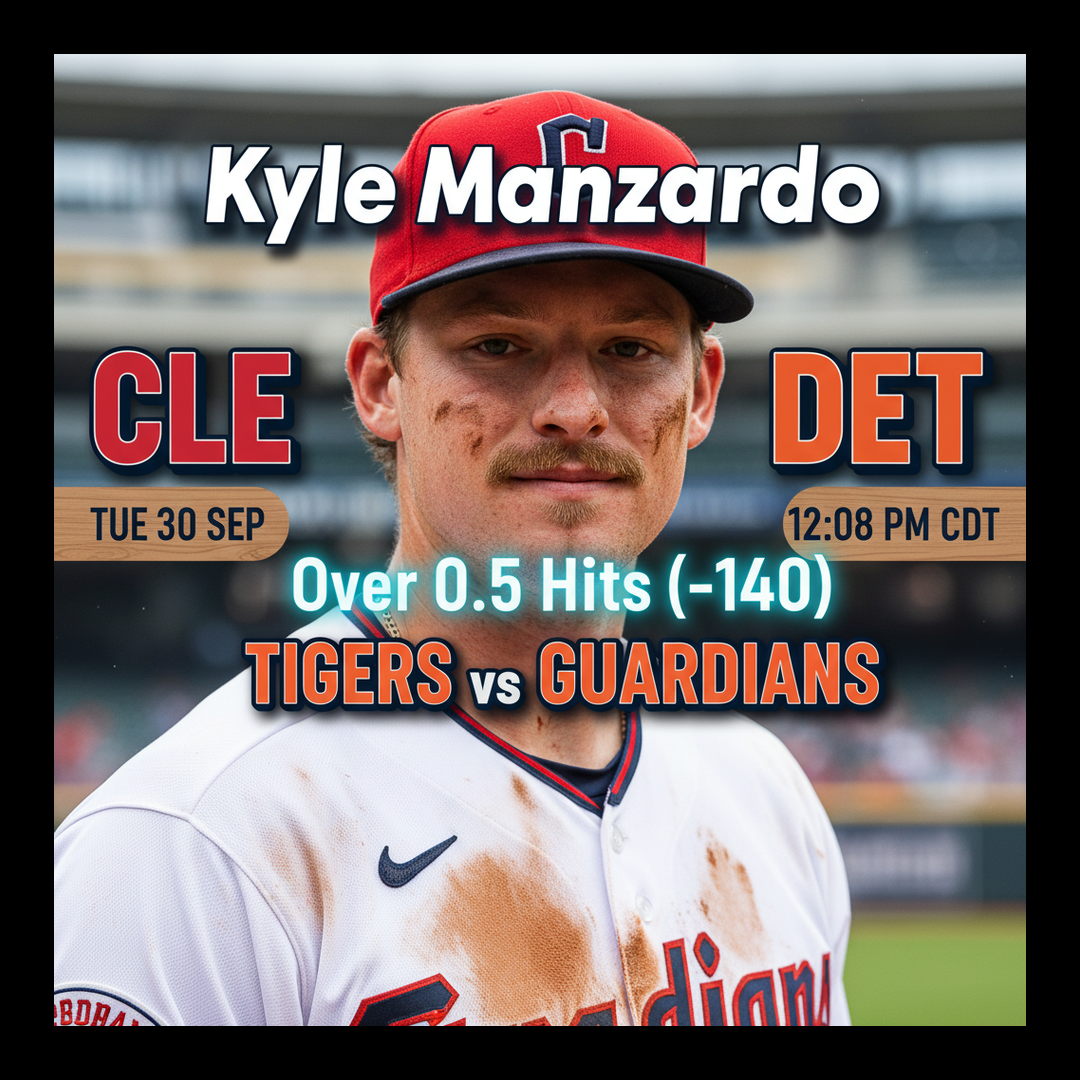Kyle Manzardo presents a compelling value proposition on the Over 0.5 Hits prop, with an estimated true probability of success significantly exceeding the implied probability at the current odds. Based on a conservative .250 batting average projection, Manzardo has a strong likelihood of recording at least one hit against the Detroit Tigers. This prop offers one of the highest edges identified, making it an analytically sound selection. The matchup against Detroits probable starter, Jack Flaherty, is a key factor. While specific pitching metrics for Flaherty against left-handed hitters were not available, this lack of detailed data creates an opportunity.