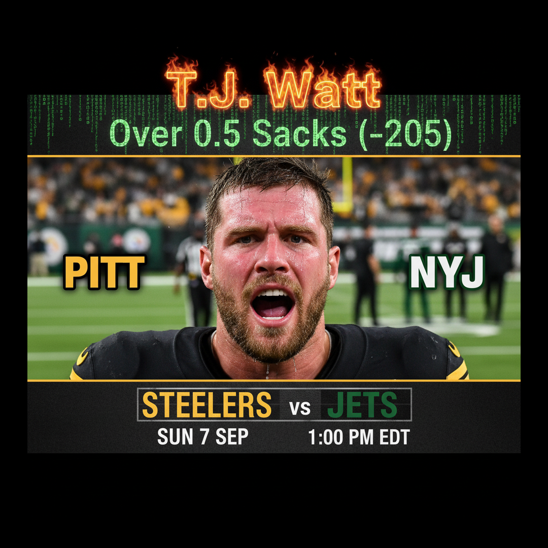 - 1.T.J. Watt Over 0.5 SacksElite pass rusher facing a compromised offensive line.