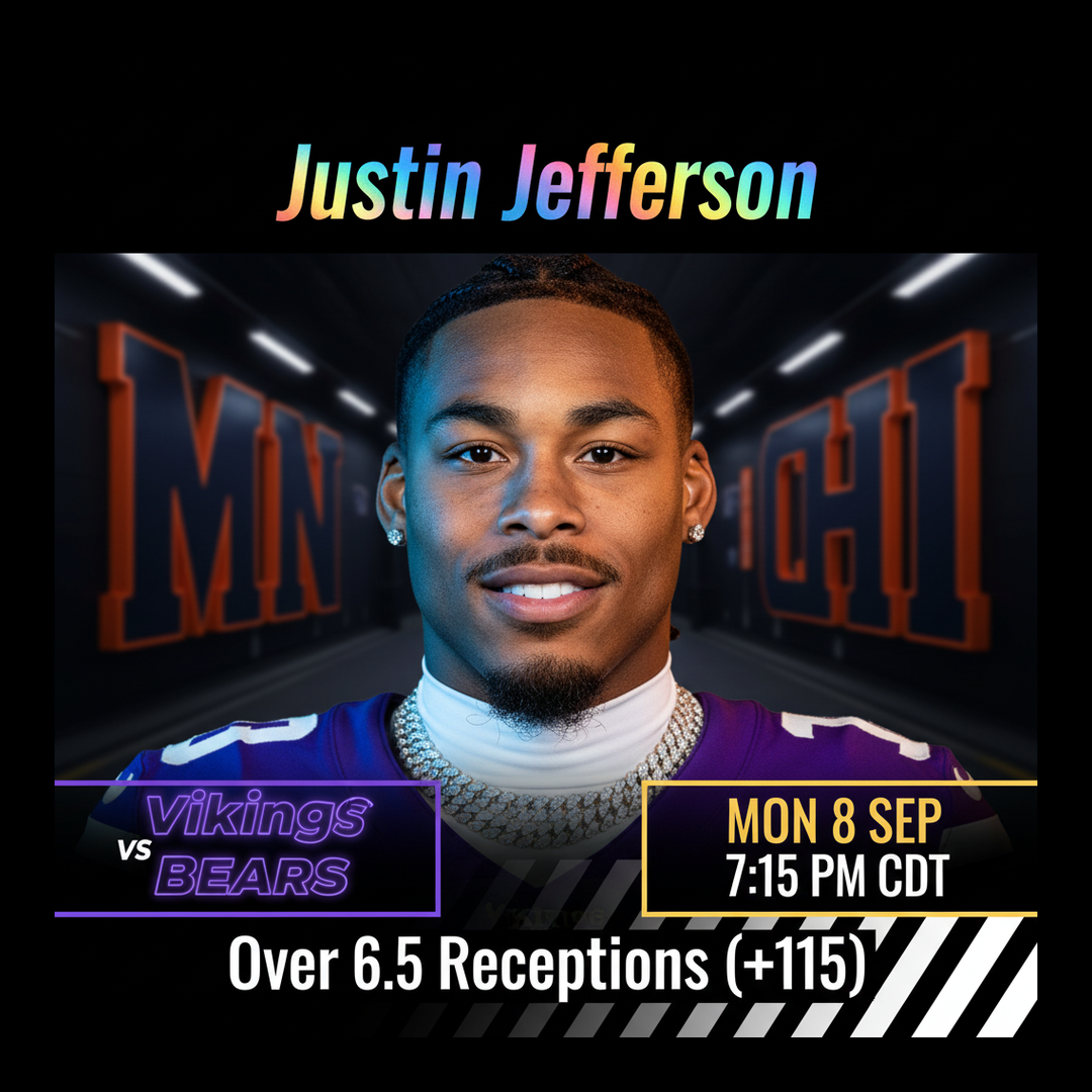 - 1.Justin Jefferson Over 6.5 ReceptionsElite receiver poised for heavy volume against a vulnerable secondary.
